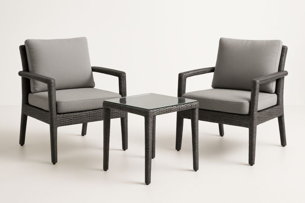 Poids : 16 kg par fauteuil, 9 kg pour la table